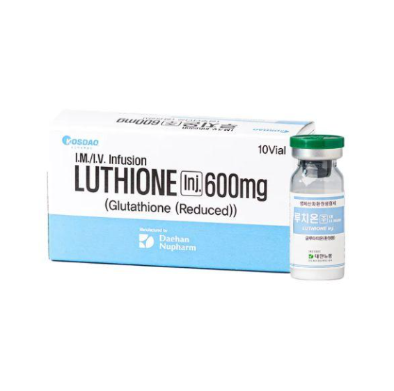 Luthione is an injectable device containing 600 mg of a reduced form of glutathione.